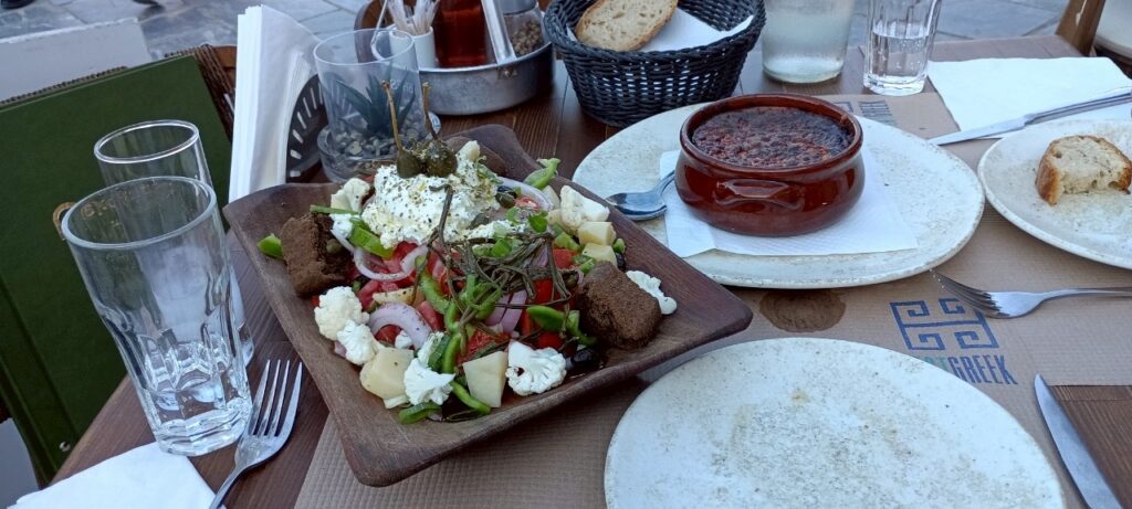 前菜には、タクシーの運転手さんにおすすめされたクレタンサラダを注文。