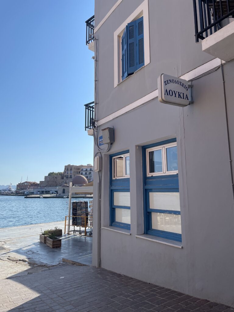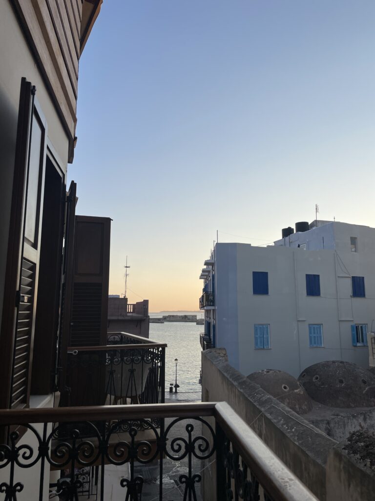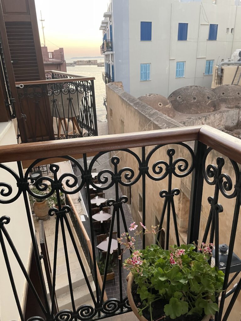 全面オーシャンビューではありませんが、それでも十分、旅の疲れも吹き飛ぶような、爽やかな朝の始まりです。Palazzo Ducaを選んで本当に良かったと思える瞬間でした。この景色を見るためだけに、またハニアに来たいと思うほどです。