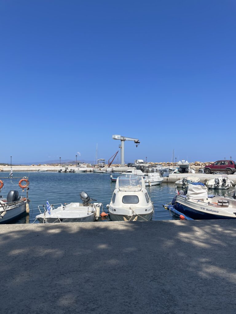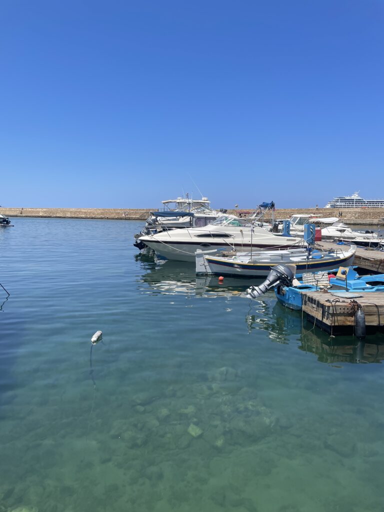 また、ビーチの手前には、たくさんの船が停泊していました。カラフルな漁船やヨットが並んでいる様子は、見ているだけでもワクワクします。せっかく船舶免許を持っているので、「いつかハニアで船を運転してみたいなぁ」なんて、夢を膨らませながら眺めていました。いつか、この海を自分の手で操縦してみたい!