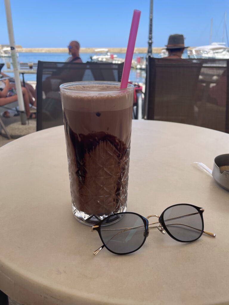 そして、少し疲れたので、海が見えるカフェで一息つくことに。テラス席に座り、エーゲ海を眺めながら、チョコレートドリンクをいただきました。濃厚なチョコレートの甘さと、潮風の香りが絶妙にマッチ。至福のひとときを過ごしました。まるで、夢を見ているような、ロマンチックな時間でした。