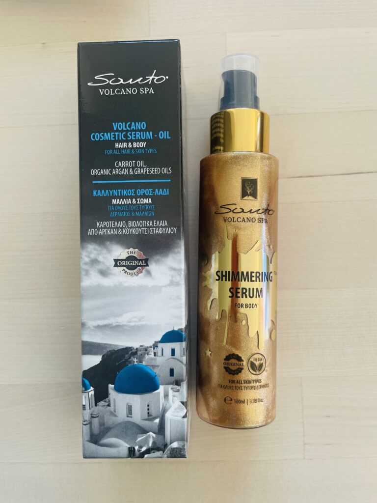 実は、以前ギリシャを訪れた際に、「SANTO VOLCANO COSMETIC SERUM OIL FOR HAIR & BODY」というヘア&ボディオイルに出会い、その甘い香りと指通りの滑らかさにすっかり虜になってしまったんです。