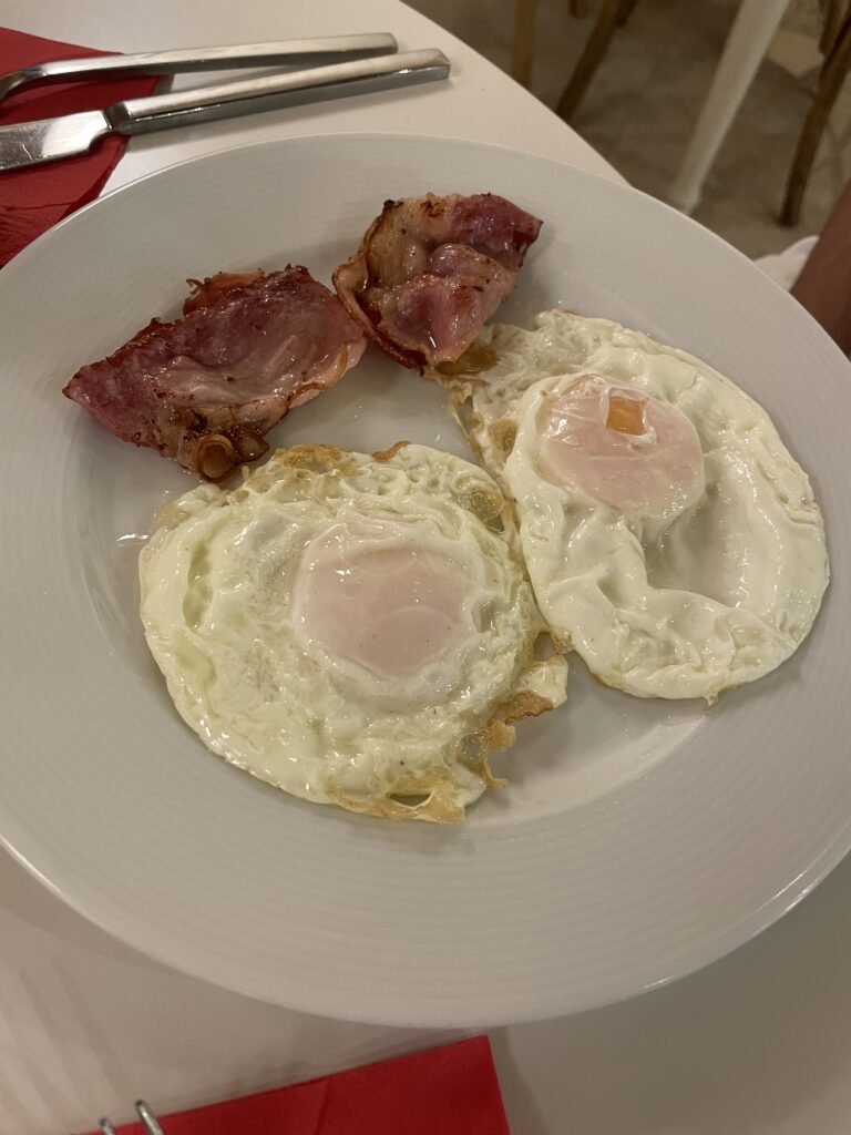 さらに、シェフが作ってくれる目玉焼きとオムレツは、想像をはるかに超える大きさ!ふわふわのオムレツに、とろーりとした黄身がたまらない目玉焼き!