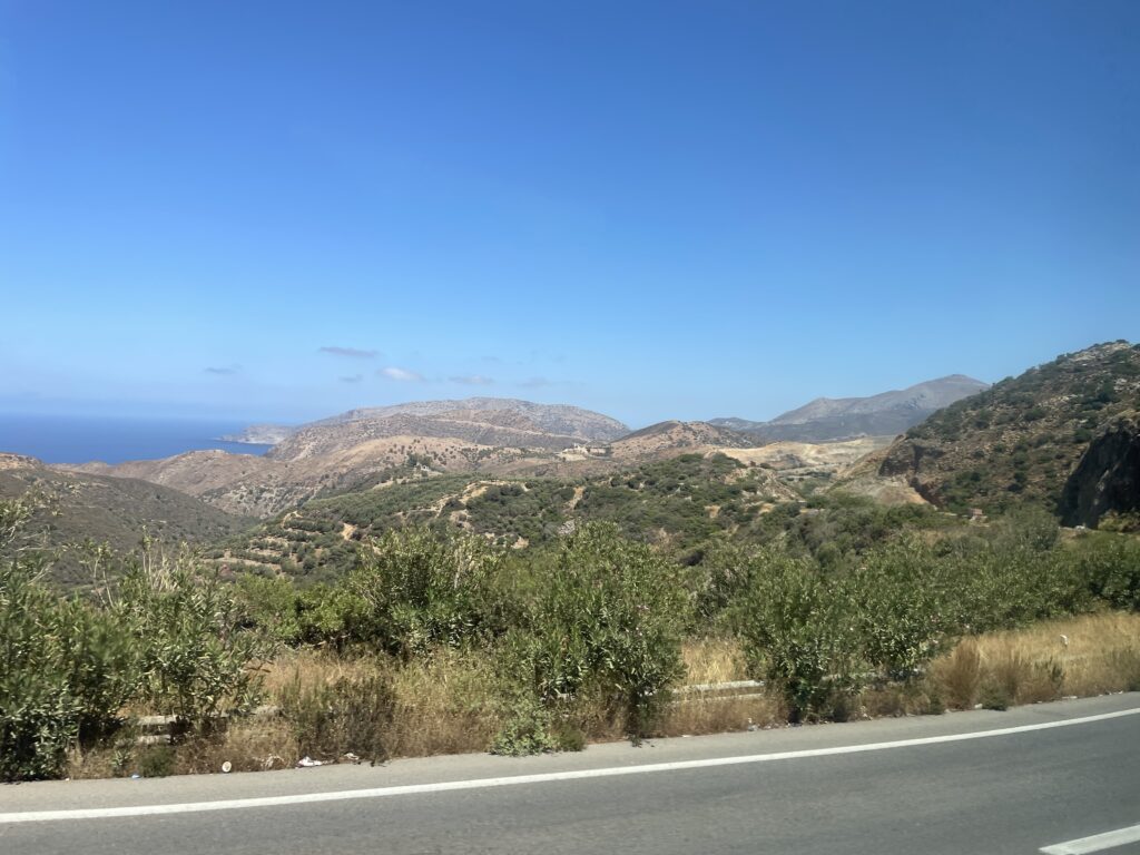 バスは定刻通りに出発。窓の外には、オリーブ畑が広がり、クレタ島ののどかな風景が広がります。