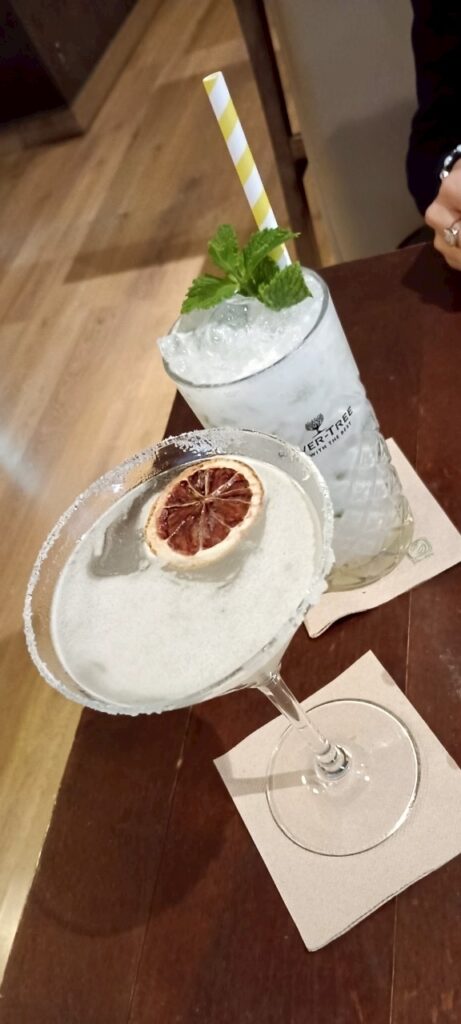 店内は、活気に満ち、壁には手書きのメニューがずらりと並び、どれも美味しそうで目移りしてしまいます。ドリンクはおしゃれな店内に合わせてカクテルを頂きました。