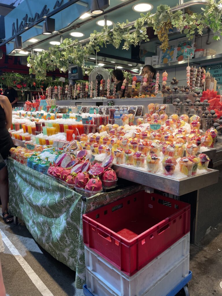 そして次に立ち寄ったのがフルーツジュースのスタンド。色とりどりのフルーツが並んでいて、どれも本当に美味しそうでした!