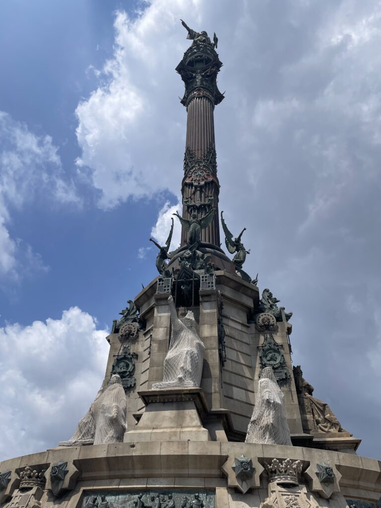 そして、ついにコロンブスの塔に到着!塔の頂上からは、バルセロナの街並みを一望できるそうですが、今回は時間の都合上、外観だけ見学することにしました。