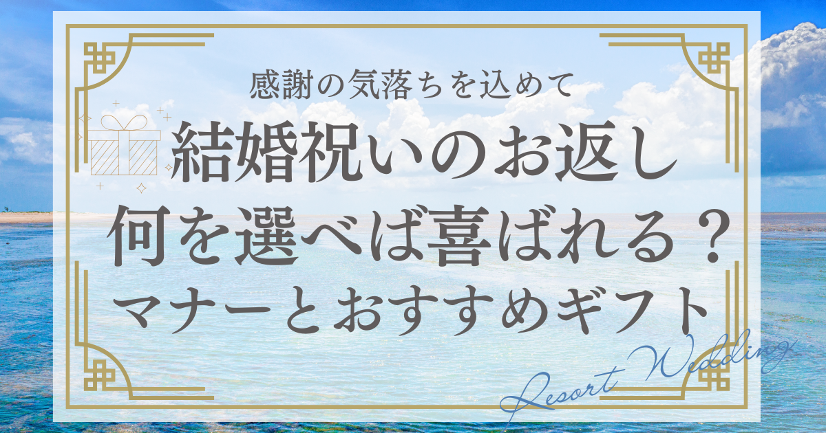 そこで今回は、結婚式のお祝いのお返しについて、基本のマナーから親族別のお返し、選び方のポイントまで詳しく解説していきます。